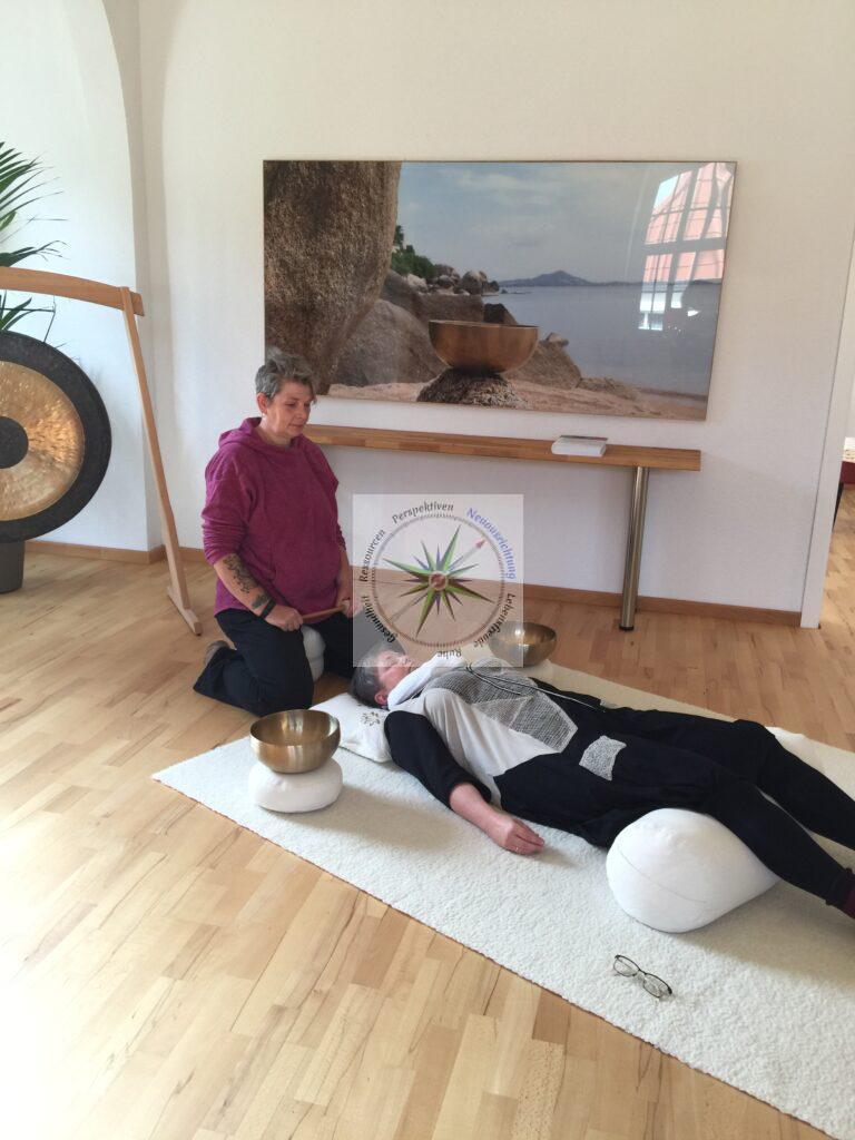 Die Vibrationen der Klangschalen setzen das Körperwasser sanft in Bewegung – jede Zelle wird quasi „massiert“ und in Einklang gebracht.